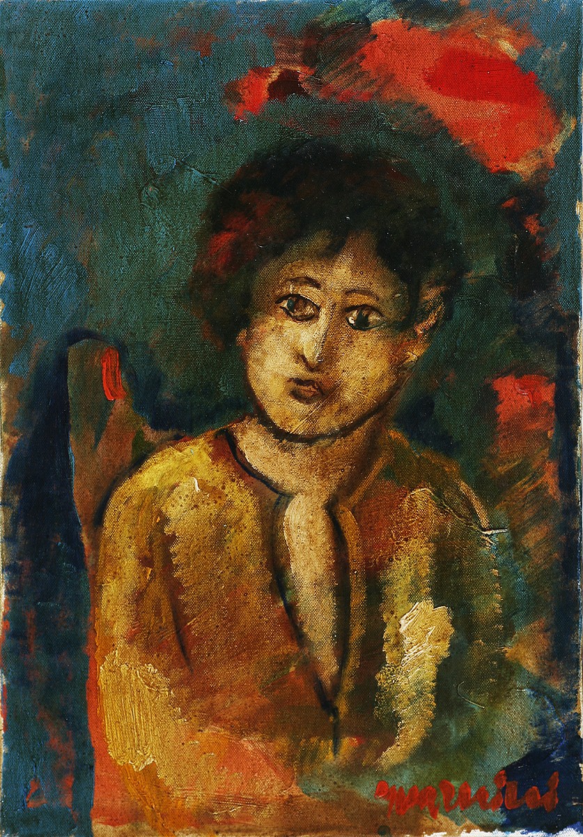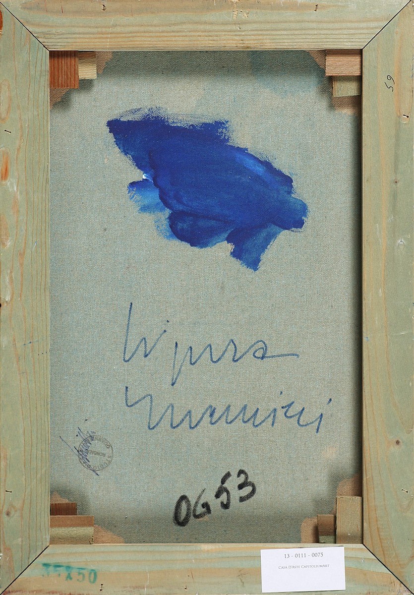 GUARNIERI ODDINO (n. 1932) Senza titolo. Olio su tela . Cm 35,00 x 50,00 x 1,50. Firma in basso a destra. Al retro firma. Autentica dell'artista su fotografia.