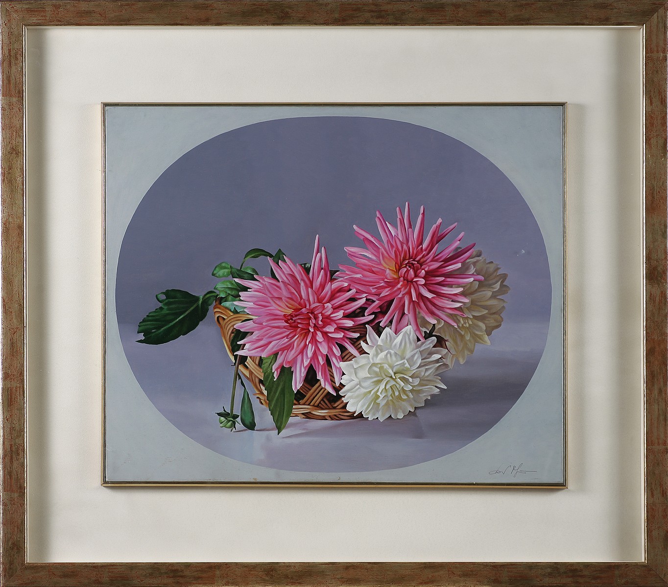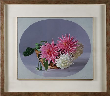 MANINI DARIO (n. 1946) Natura morta di fiori. 2002. Olio su tela . Cm 60,00 x 50,00. Firmato in basso a destra. Firmato e datato al retro 2002. . Cornice presente