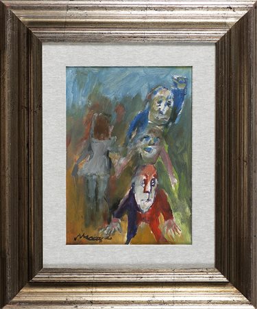 MACCARI MINO (1898 - 1989) Senza titolo. Olio su tela incollata su tavola. Cm 26,00 x 36,00. Firma in basso a sinistra. Opera archiviata presso l'archivio Mino Maccari, Massa Carrara, come da documentazione fotografica allegata riportante il relativo numero d'inventario. Cornice presente