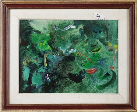 TRECCANI ERNESTO (1920 - 2009) Piccola siepe. 1970. Olio su tela. Cm 30,00 x 40,00. Firma titolo e anno al retro. Cornice presente