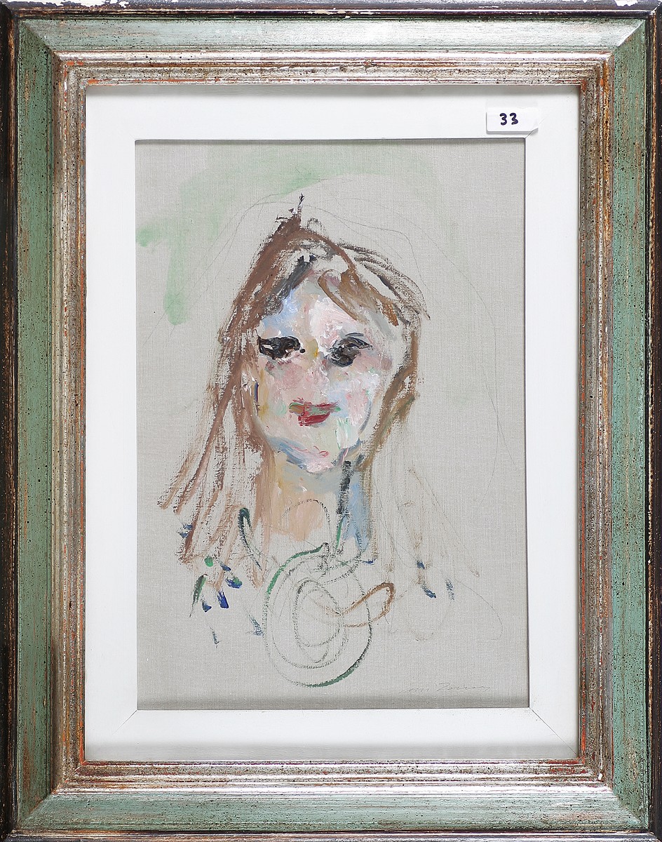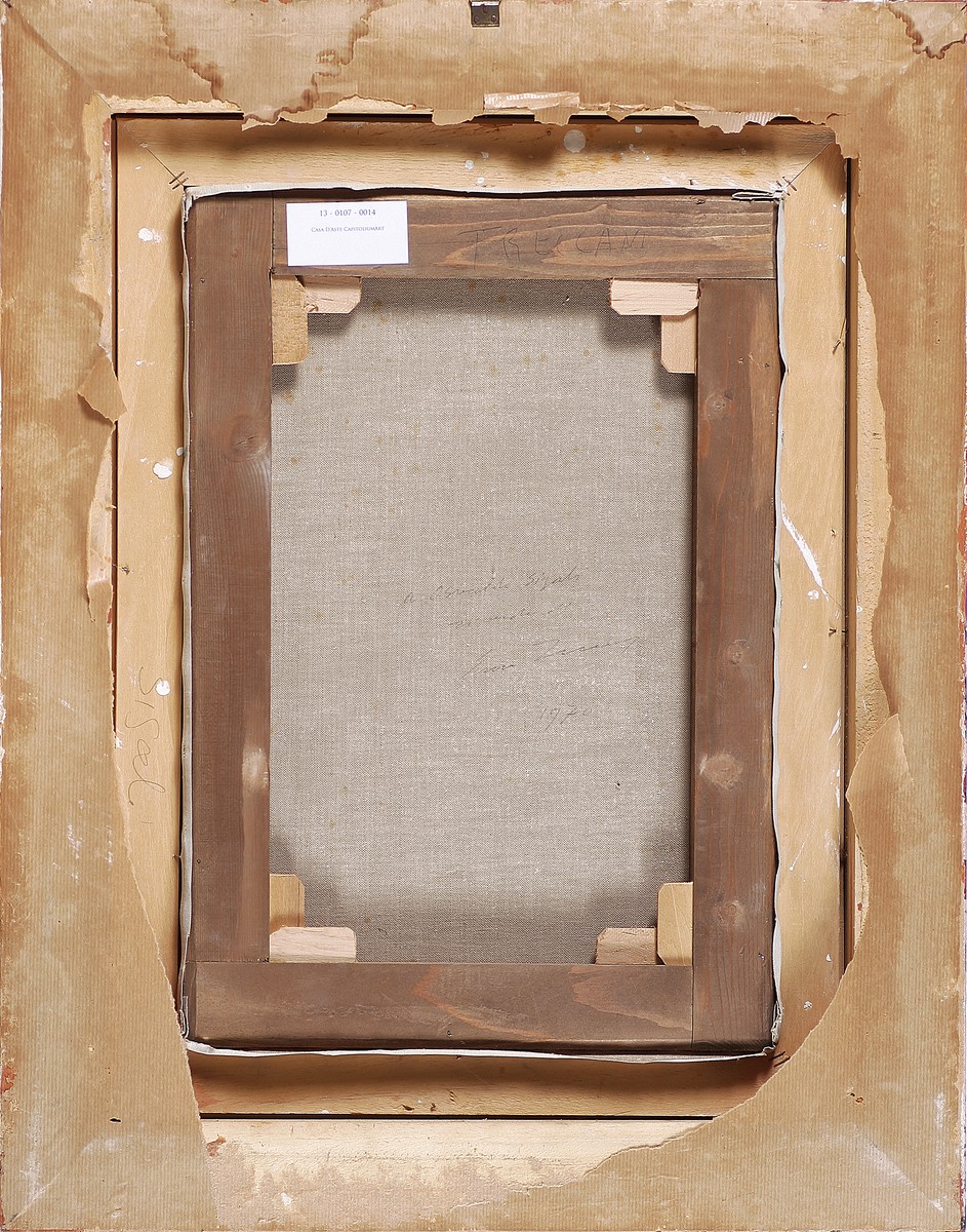 TRECCANI ERNESTO (1920 - 2009) Senza titolo. 1970. Olio su tela. Cm 35,00 x 50,00. Firma in basso a destra. Dedica al retro e anno. Cornice presente