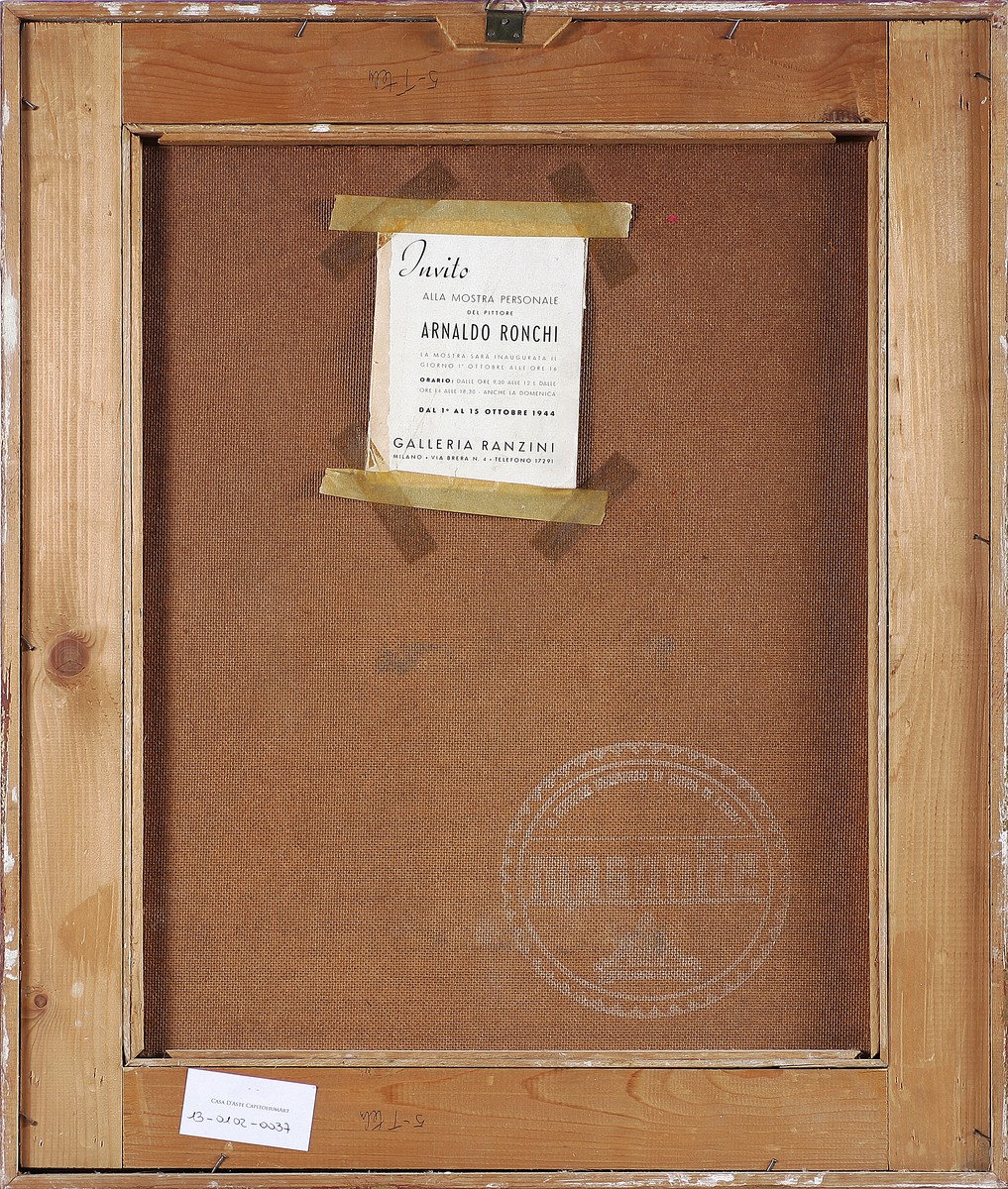 RONCHI ARNALDO (1898 - 1985) Senza titolo. 1985. Olio su faesite. Cm 40,00 x 50,00. Firma in basso a destra. Cornice presente