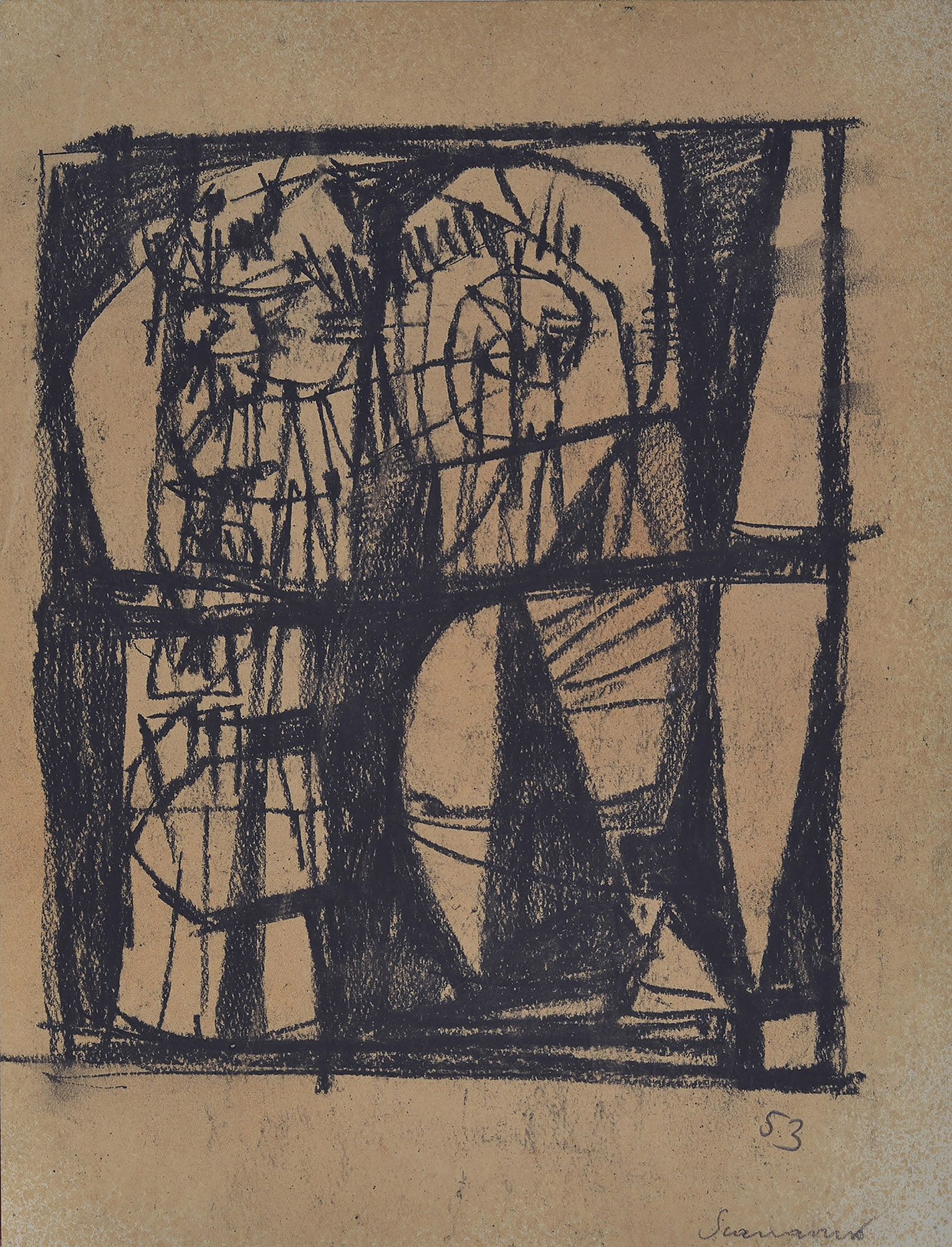 Emilio Scanavino (1922-1986) Senza titolo 1953 Carboncino su carta, cm. 28x21 Firma e data in basso a destra. Autentica di Giorgina Scanavino su foto.