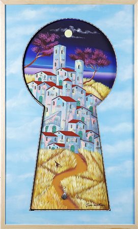 DA NORCIA PAOLO (n. 1953) Senza titolo. Tecnica mista e led su tela. Cm 60,00 x 100,00. Firma in basso a destra. Al retro firma, titolo e anno. Autentica dell'Associazione Nazionale amici de Il Quadrato