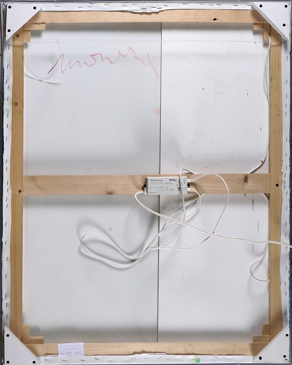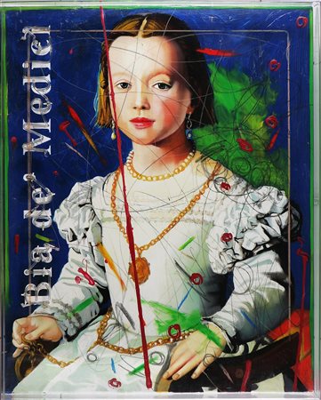 MANERA ENRICO (n. 1947) Bia de' Medici. Smalti e neon su tela emulsionata. Cm 85,00 x 101,00 x 9,00. In teca di plexiglass. Autentica dell'artista su fotografia.