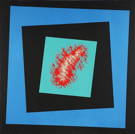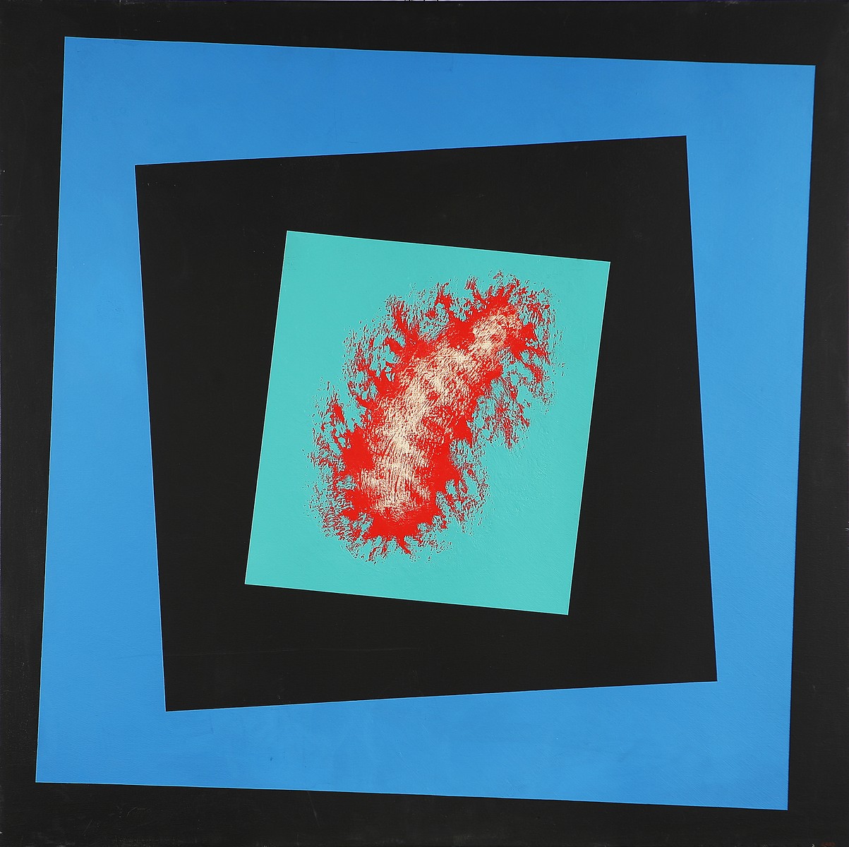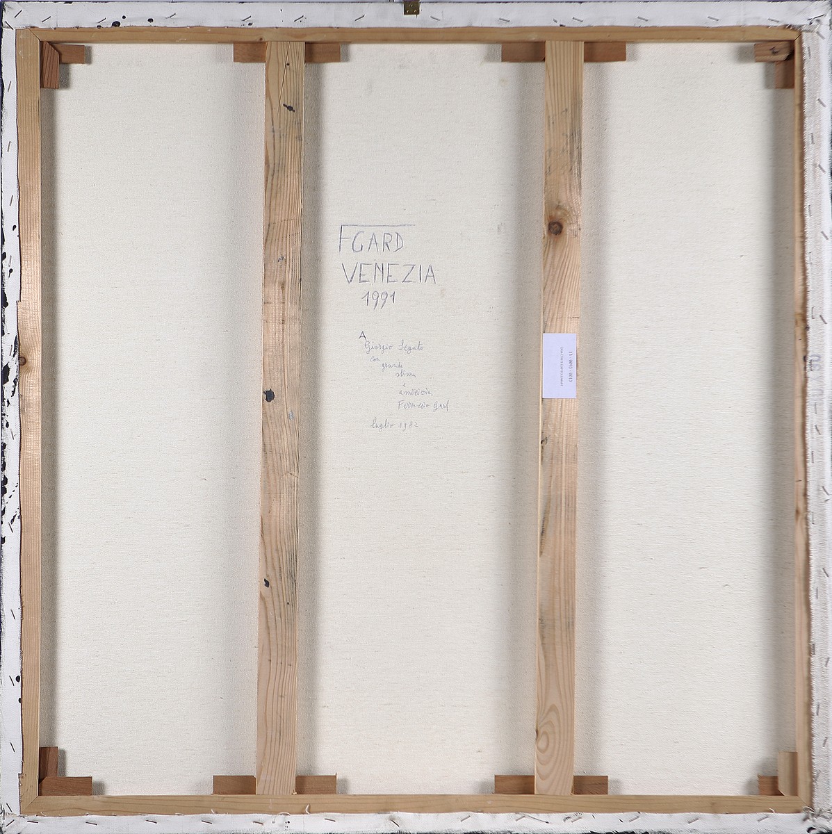 GARD FERRUCCIO (n. 1941) Senza titolo. Acrilico su tela. Cm 90,00 x 90,00. Anni '80. Al retro firma e dedica datata Luglio 1982.