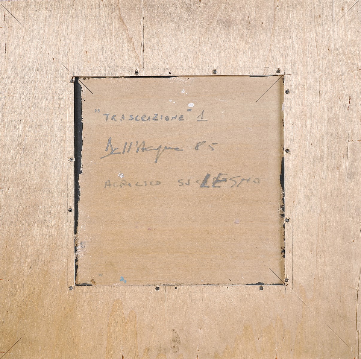 DALL'ACQUA LUCIANO (n. 1932) Trascrizione 1. 1985. Acrilico su tavola. Cm 30,00 x 30,00. Al retro titolo firma e anno.