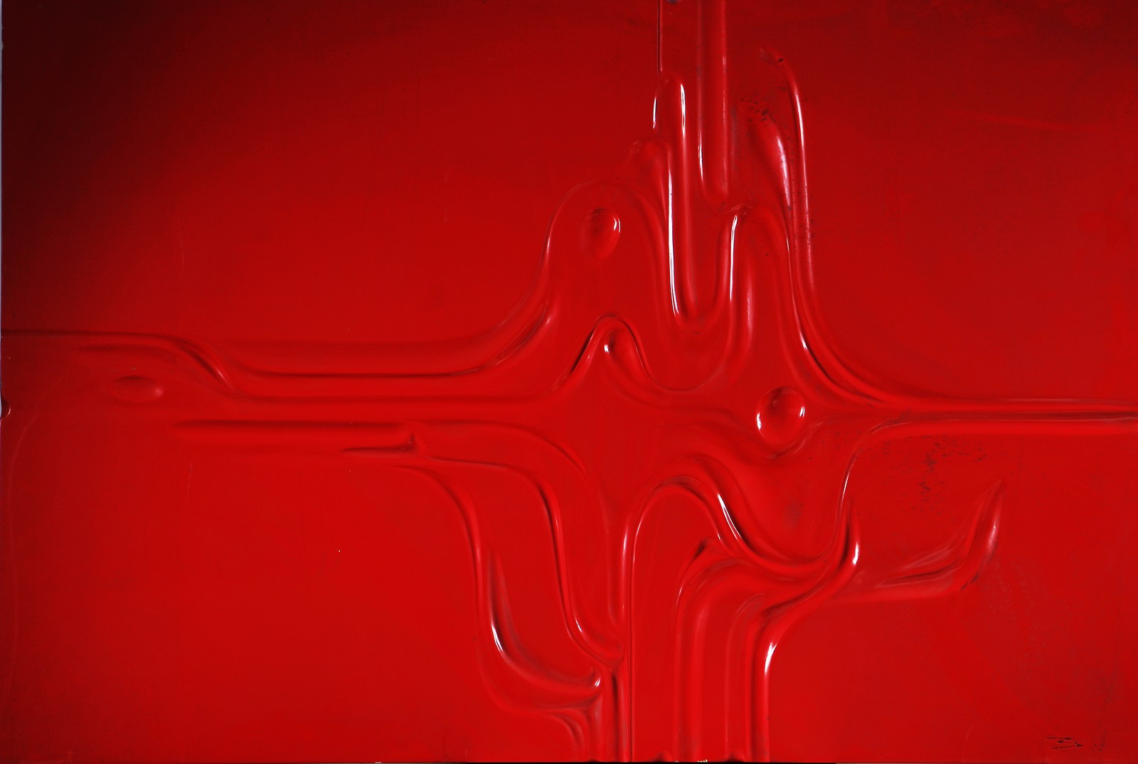 Senza titolo. Smalti su tavola. Cm 121,50 x 81,50 x 5,00. Firma in basso a destra.