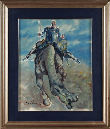 DE PAOLIS PIERO Don Chisciotte. Olio su tela. Cm 40,00 x 50,00. Firma in...