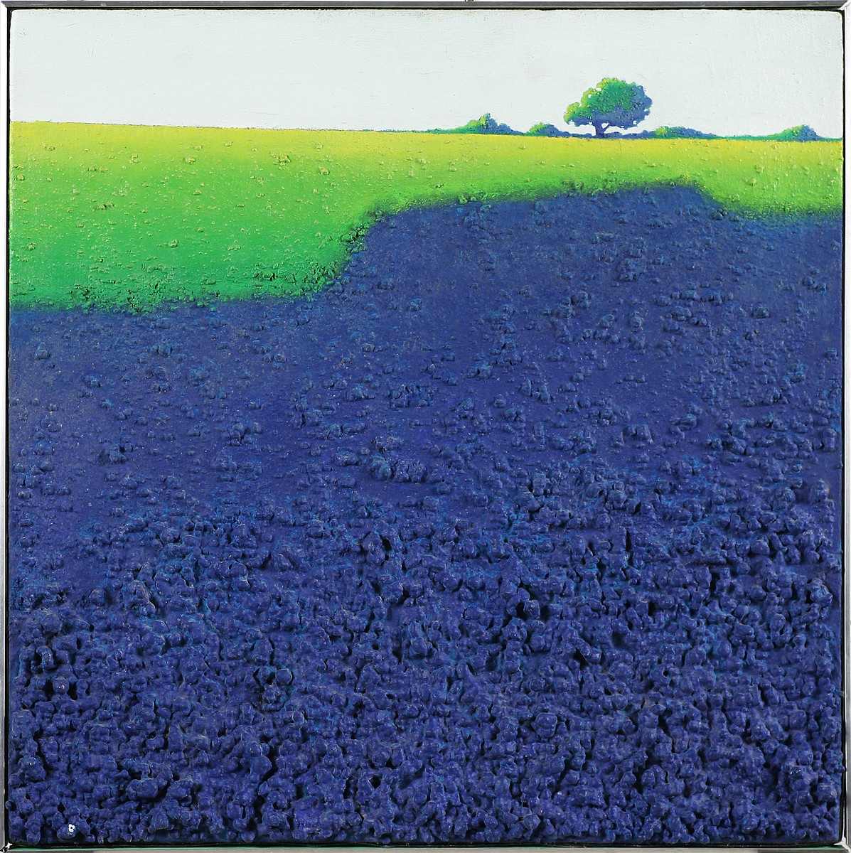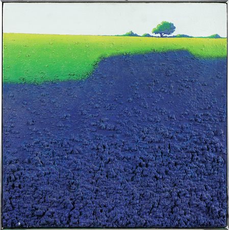 RIBERZANI DANIEL (n. 1942) Ombre bleue. Acrilico e olio su tela. Cm 50,00 x 50,00. Titolo e firma al retro.