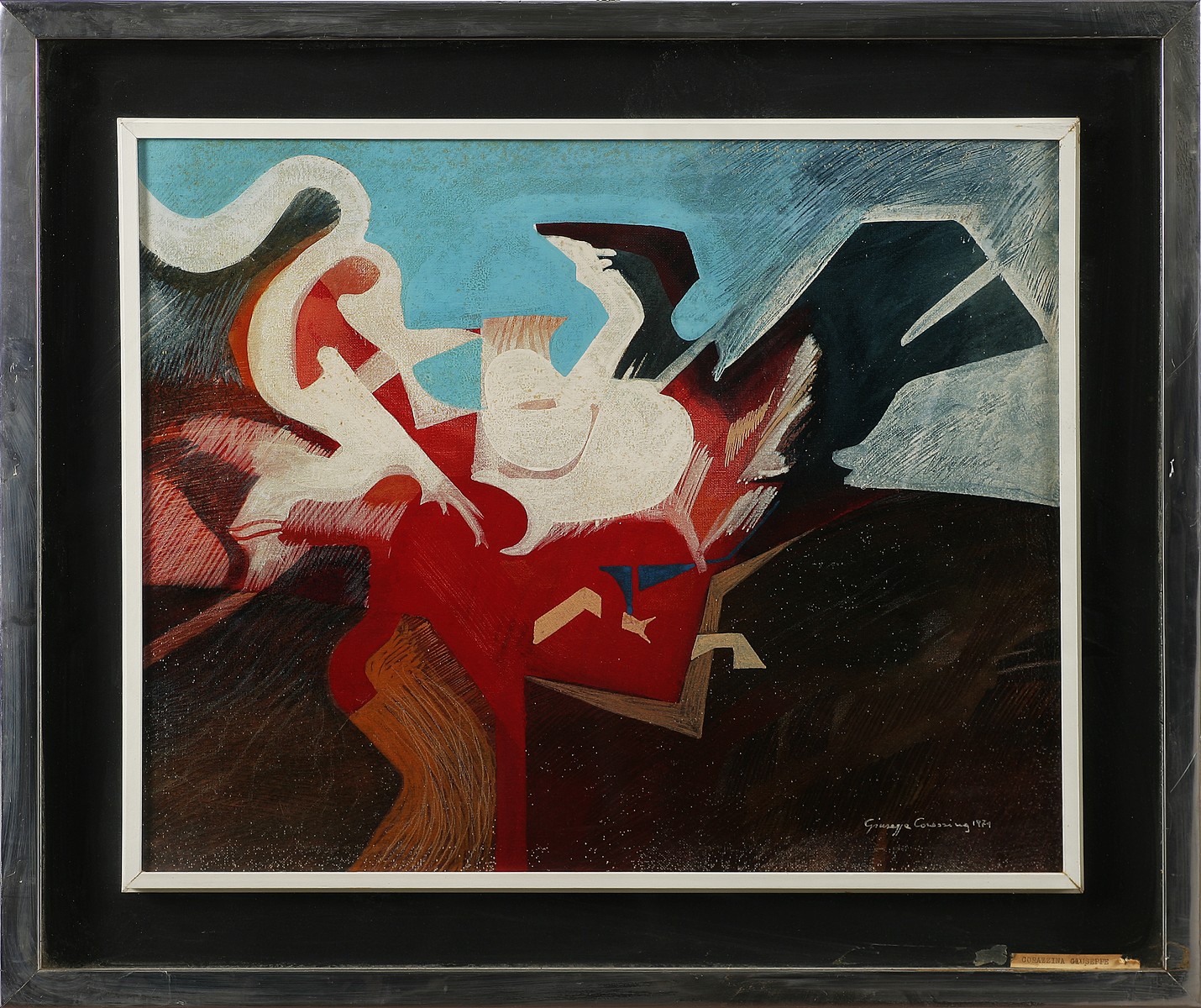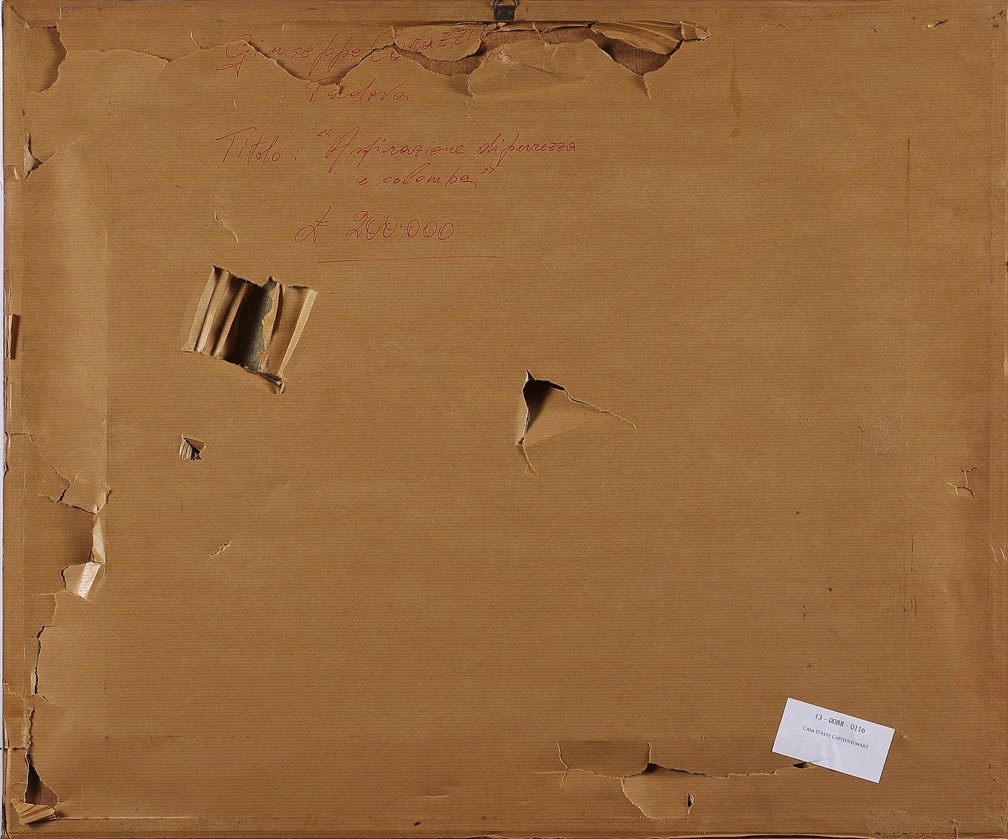 CORAZZINA GIUSEPPE (n. 1945) Aspirazione di purezza e colomba. 1974. Olio su tela . Cm 50,00 x 40,00. Firma e anno in basso a destra. Al retro titolo e firma. Cornice presente