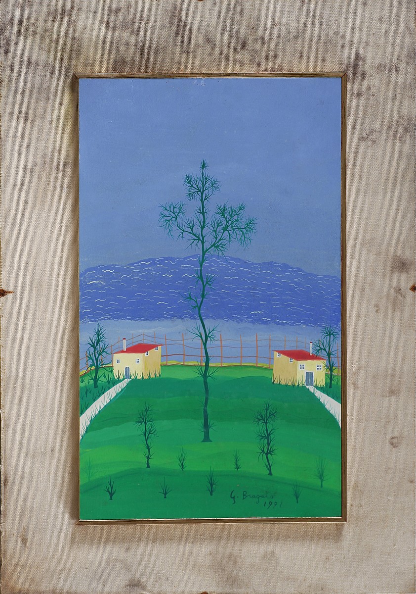 BRAGATO GIOACCHINO (n. 1940) Senza titolo. 1991. Olio su tavola. Cm 25,00 x 41,50. Firma e anno in basso a destra.