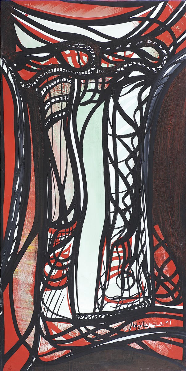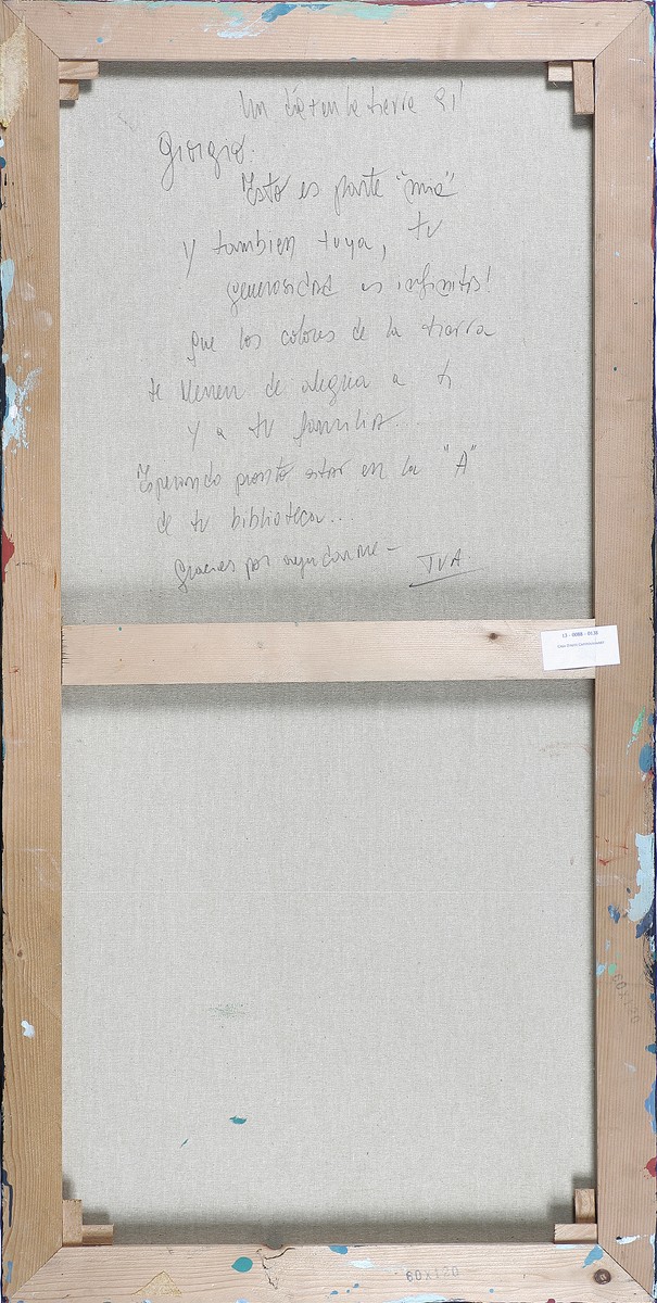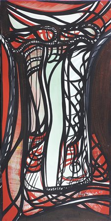 Senza titolo. Tecnica mista su tela. Cm 60,00 x 120,00. Firma in basso a destra.