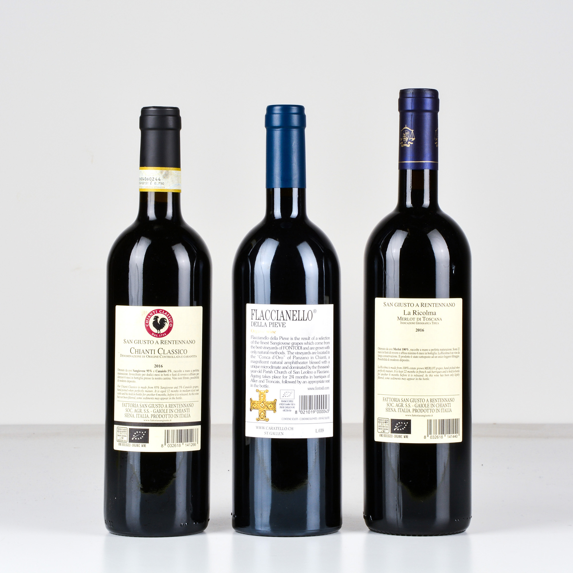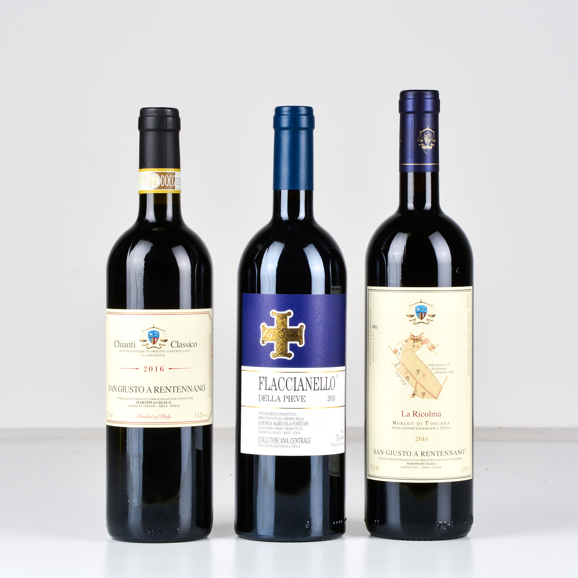 San Giusto a Rentennano, Chianti Classico San Giusto a Rentennano, La Ricolma Merlot Fontodi, Flaccianello della Pieve, (3 Bts) 2016 Chianti Classico 1 Bt WN La Ricolma 1 Bt WN Flaccianello della Pieve 1 Bt WN