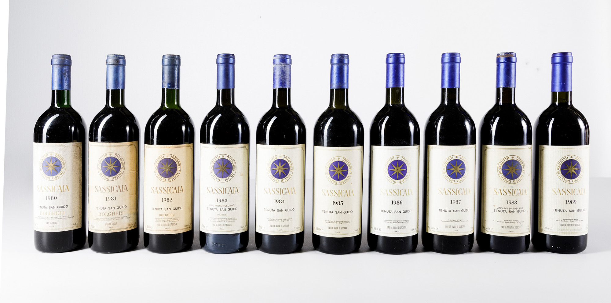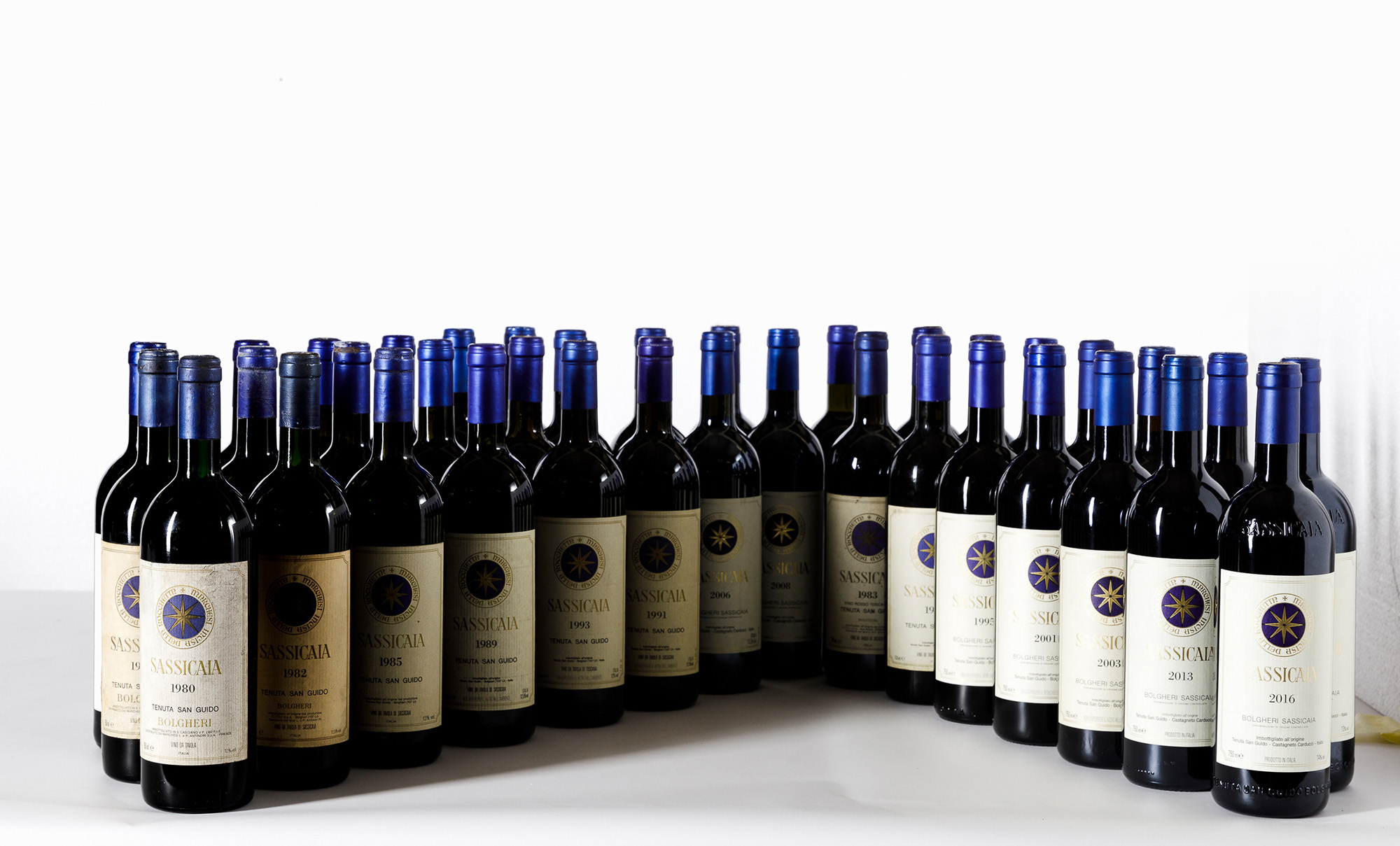 Tenuta San Guido, Verticale di Sassicaia, (37 Bts) 1980 Riserva 1 Bt TS 1981 1 Bt TS 1982 1 Bt TS 1983 1 Bt TS 1984 1 Bt TS 1985 1 Bt TS 1986 1 Bt TS 1987 1 Bt WN 1988 1 Bt BN 1989 1 Bt BN 1990 1 Bt TS 1991 1 Bt BN 1992 1 Bt TS 1993 1 Bt TS 1994 1 Bt TS 1995 1 Bt BN 1996 1 Bt BN 1997 1 Bt BN 1998 1 Bt BN 1999 1 Bt BN 2000 1 Bt BN 2001 1 Bt BN 2002 1 Bt BN 2003 1 Bt WN 2004 1 Bt WN 2005 1 Bt WN 2006 1 Bt WN 2007 1 Bt WN 2008 1 Bt WN 2009 1 Bt WN 2010 1 Bt WN 2011 1 Bt WN 2012 1 Bt WN 2013 1 Bt WN 2014 1 Bt WN 2015 1 Bt WN 2016 1 Bt WN