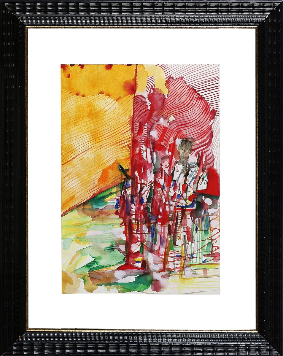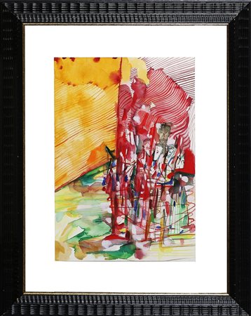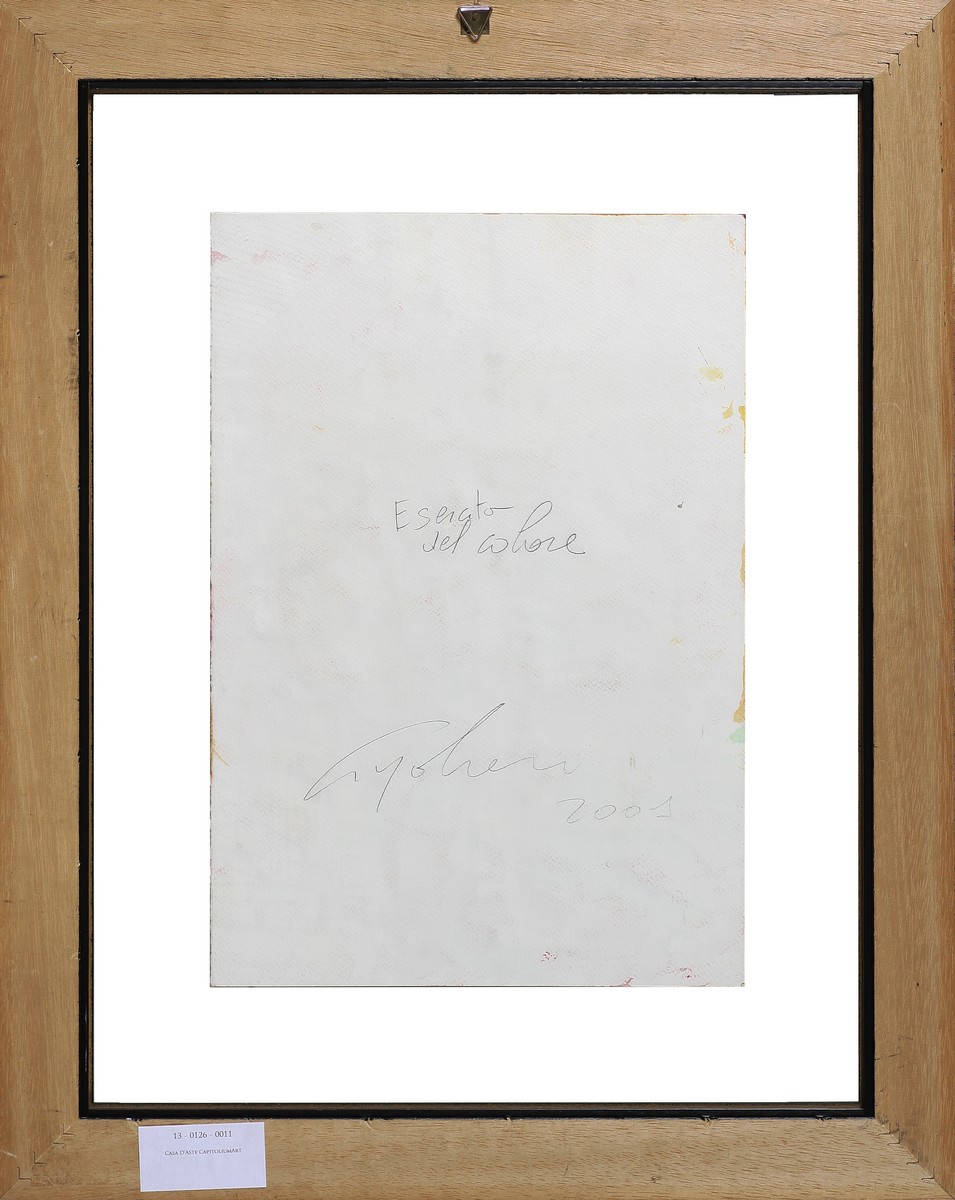 CINGOLANI MARCO (n. 1961) Esercito del colore. 2001. Tecnica mista su carta. Cm 30,00 x 43,00. Al retro titolo, firma e data a matita. Autentica dell'artista su fotografia. Cornice presente