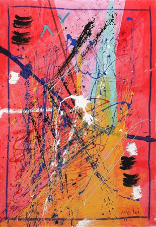 MELZI GIORGIO (n. 1944) Senza titolo. Tecnica mista su cartone. Cm 70,00 x 100,00. Firma in basso a destra ed al retro.