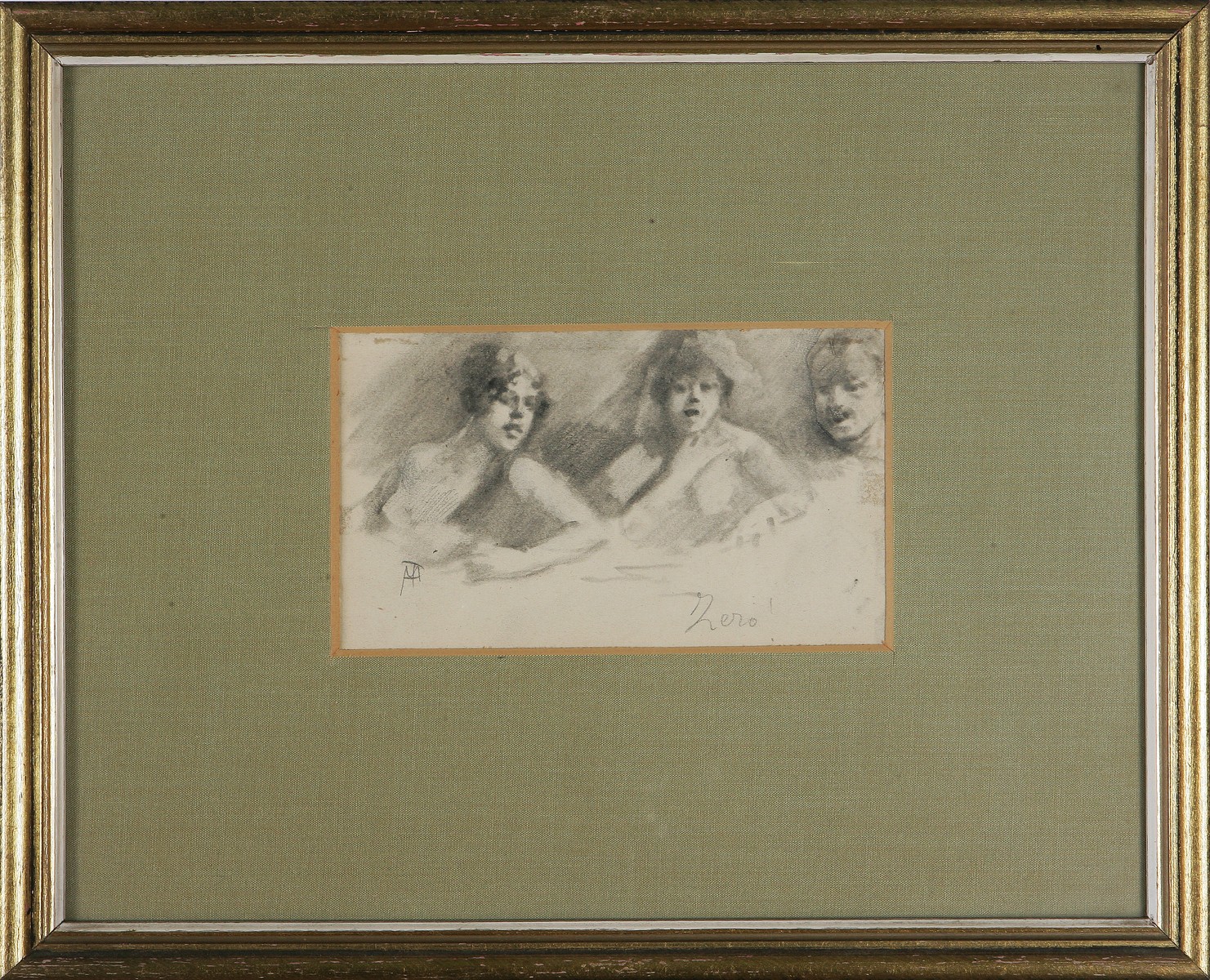 MARIANI POMPEO (1857 - 1927) Tappeto verde. Matita su carta. Cm 16,80 x 10,30. Monogrammato in basso a destra. Al retro firma e timbro dello Studio Pompeo Mariani, Bordighera. Provenienza: Galleria Cocorocchia, Milano. Cornice presente