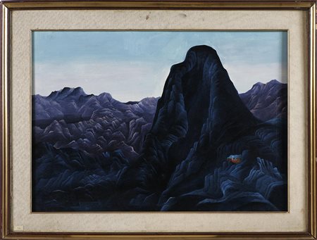 GORLATO BRUNO (n. 1940) Senza titolo. 1975. Olio su tela . Cm 70,00 x 50,00. Firma e anno in basso a destra. Firma e anno al retro. Cornice presente