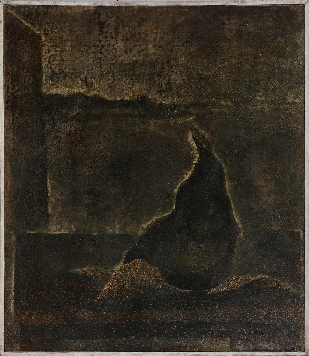 DONOLATO GIUSEPPE (n. 1956) Senza titolo. Tecnica mista su faesite. Cm 34,50 x 39,50. Firma in basso a destra. Cornice presente