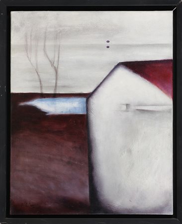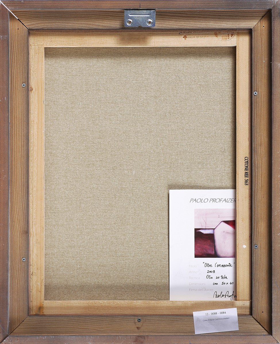 PROFAIZER PAOLO (n. 1961) Oltre l'orizzonte. 2003. Olio su tela. Cm 40,00 x 50,00. Firma in basso a sinistra. Autentica dell'artista su fotografia. Cornice presente