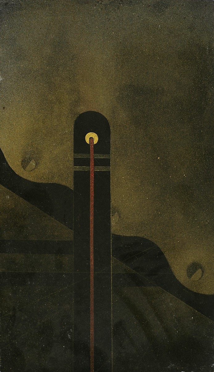 Senza titolo. Tecnica mista su tavola. Cm 24,00 x 42,00. Firma in basso a destra.