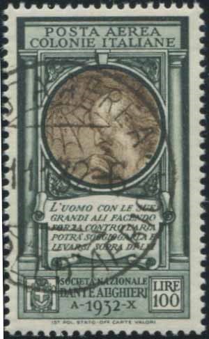 1932, Regno d’Italia, Posta Aerea,, Lire 100 “Dante Alighieri” (S.P.A.41) esemplare ben centrato con annullo del novembre 1932.