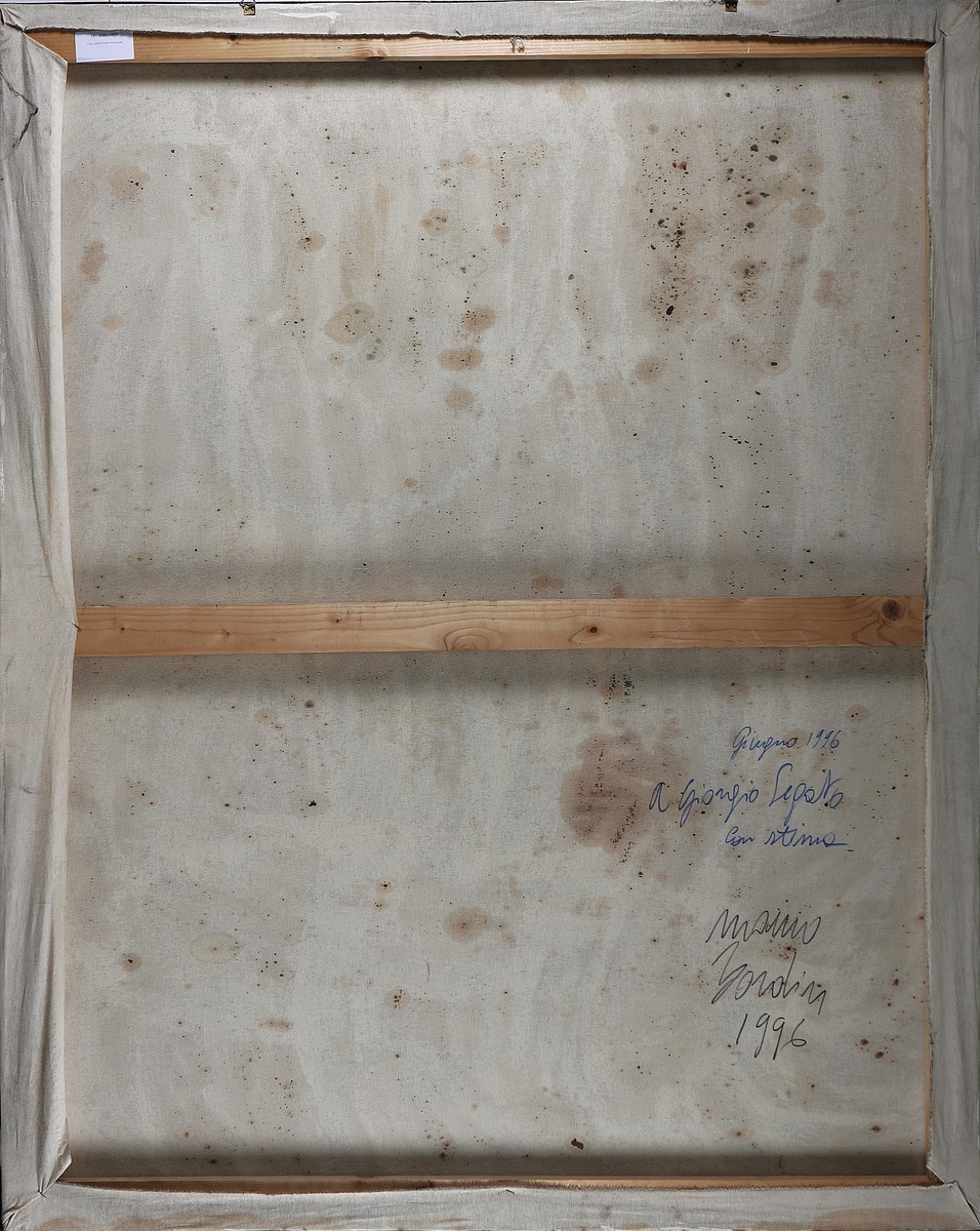 BORDIN MAURO (n. 1970) Senza titolo. 1996. Olio su tela . Cm 120,00 x 150,00. Firma e anno in basso a destra. Al retro firma anno e dedica.