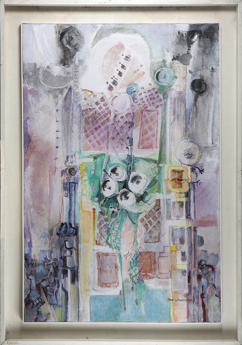 STRAZZABOSCO TONI (1933 - 1983) Senza titolo. Olio su tela. Cm 80,00 x 120,00. Firma in basso a destra. Cornice presente