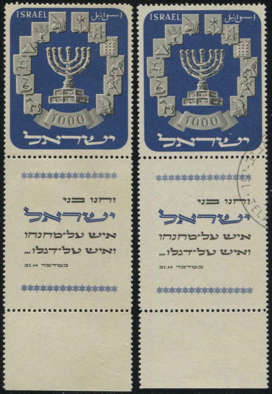 1952, ISRAELE, Menorah, Un valore nuovo g.i. con app. e uno usato (Un. 53). Molto belli.