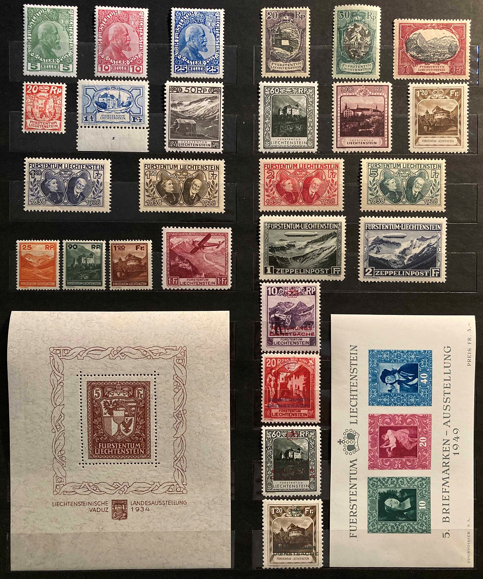 1912/1997, Liechtenstein, collezione completa, di tutti i francobolli, foglietti, minifogli, P.Aerea, Servizi del periodo, in cinque album GBE. Qualità eccellente, tutti con gomma integra, qualche certificato Fiecchi, alto valore.