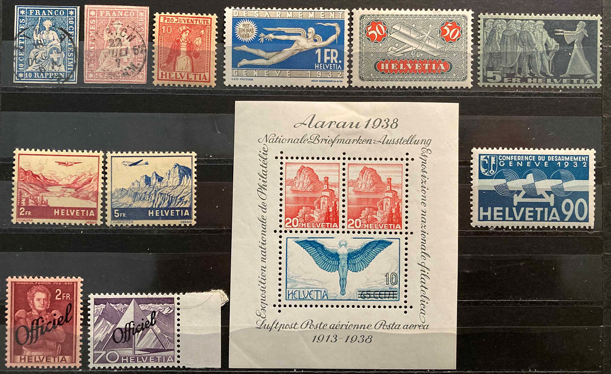 1914/1995, Svizzera, avanzata raccolta in due classificatori "Clipper", con molte emissioni e serie, P. Aerea e qualche foglietto. Con t.l. il primo periodo, integra dagli anni ‘50. Buona qualità.