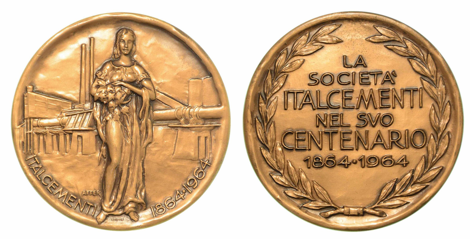 BERGAMO. Società Italcementi., Medaglia in bronzo per il 100° Anniversario (1864-1964).