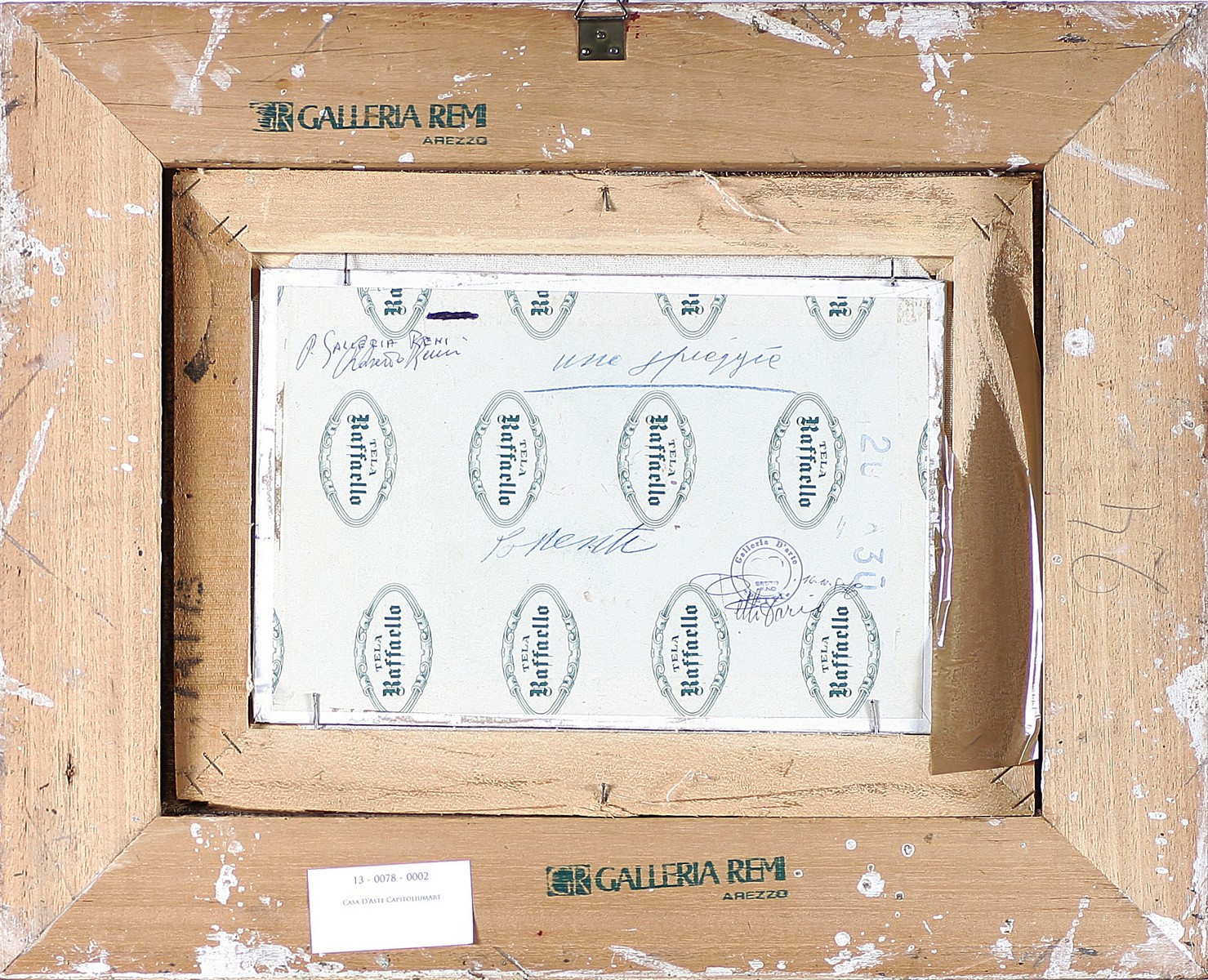 POSSENTI ANTONIO (n. 1933) Una spiaggia. Olio su cartone telato. Cm 30,00 x 20,00. Firma in alto a destra. Al retro firma e titolo. Opera archiviata presso l'Archivio delle opere di Possenti, a cura di Fantasio e Joe, Lucca, come da documentazione fotografica allegata riportante il relativo numero d'inventario. Cornice presente