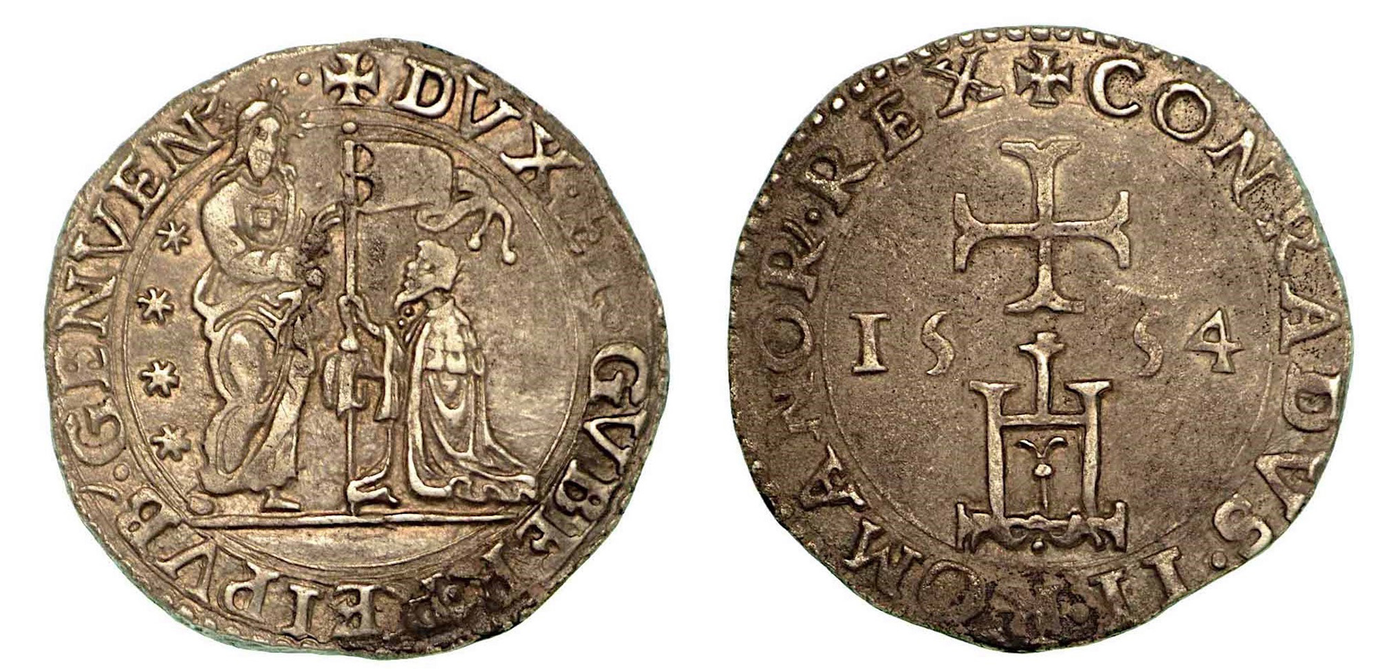 GENOVA. Dogi Biennali, 1528-1797., Testone della benedizione (I tipo) 1554.