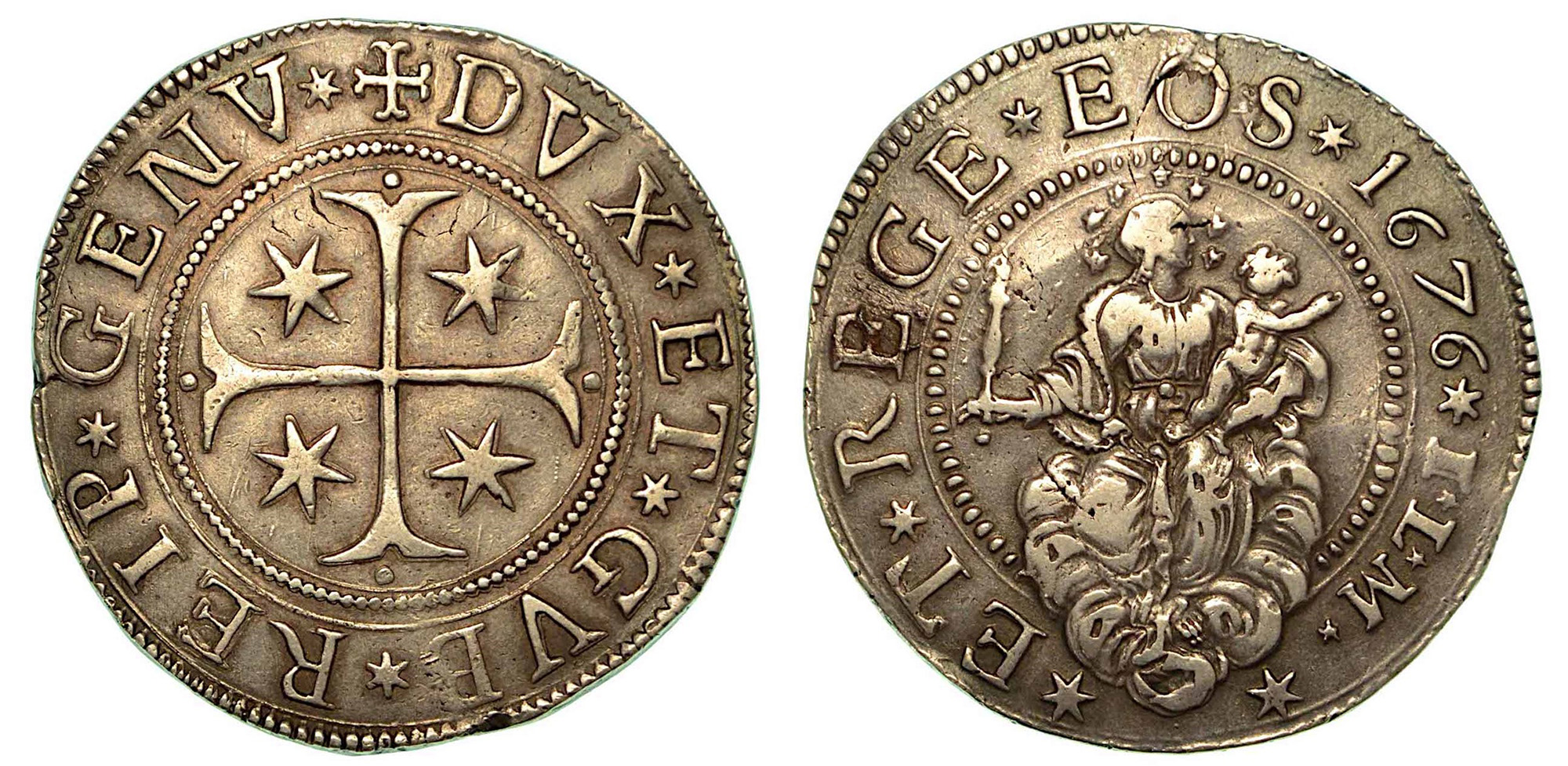 GENOVA. Dogi biennali, 1528-1797., Mezzo scudo largo 1676.