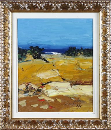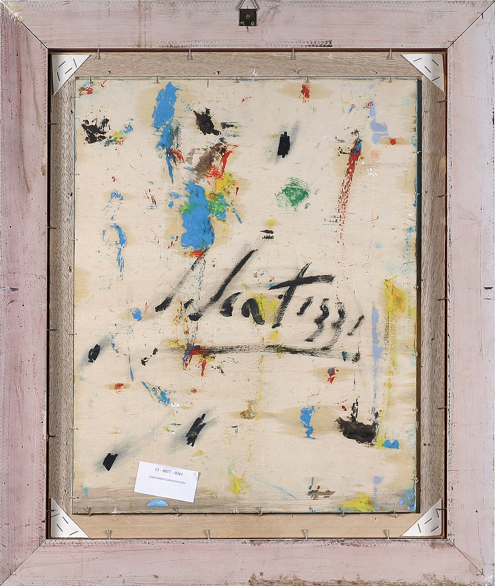 SCATIZZI SERGIO (1918 - 2009) Senza titolo. Olio su tavola. Cm 40,00 x 50,00. Firma in basso a destra. Firma al retro. Autentica dell'artista su fotografia. Cornice presente