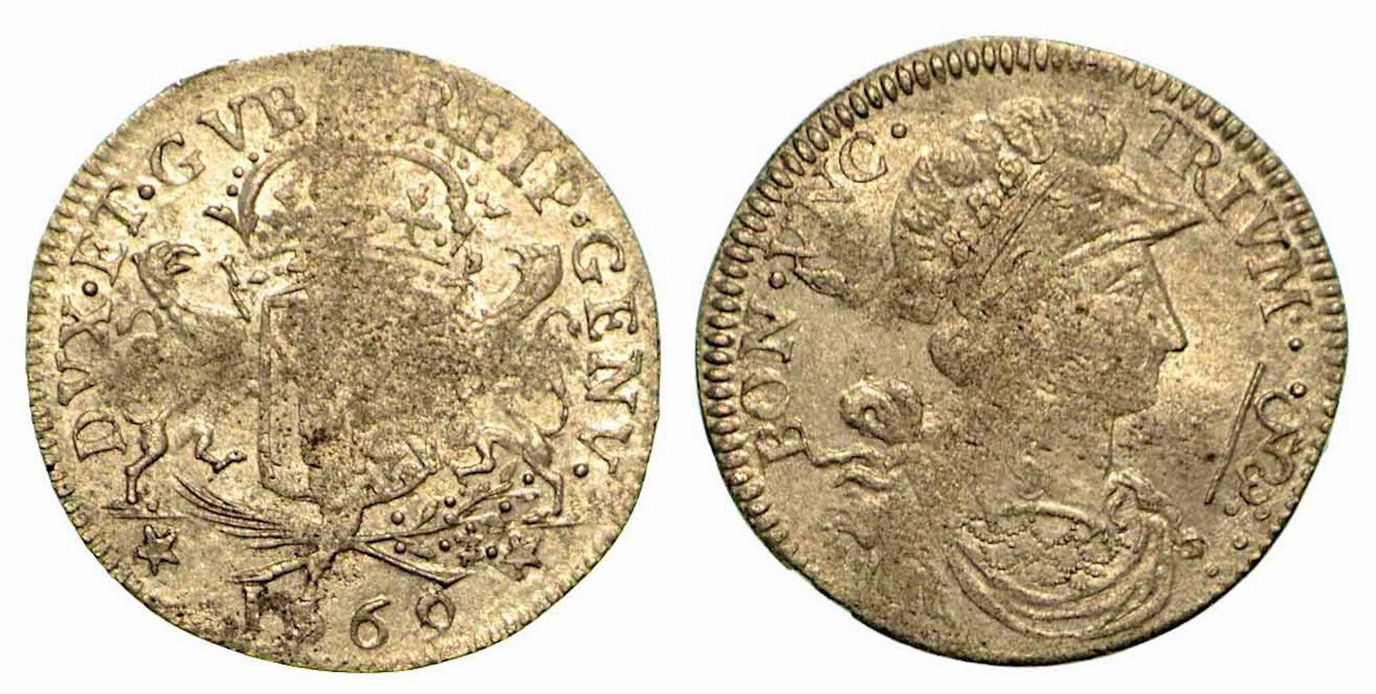MONETAZIONE PER IL LEVANTE., Ligurino o Luigino 1669.