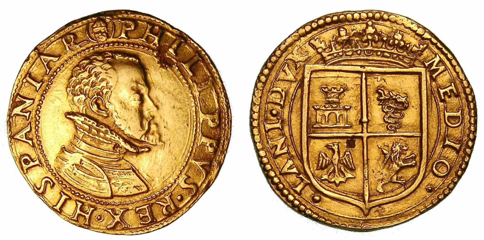MILANO. Filippo II, 1554-1598., Doppia da quattro scudi d’oro.