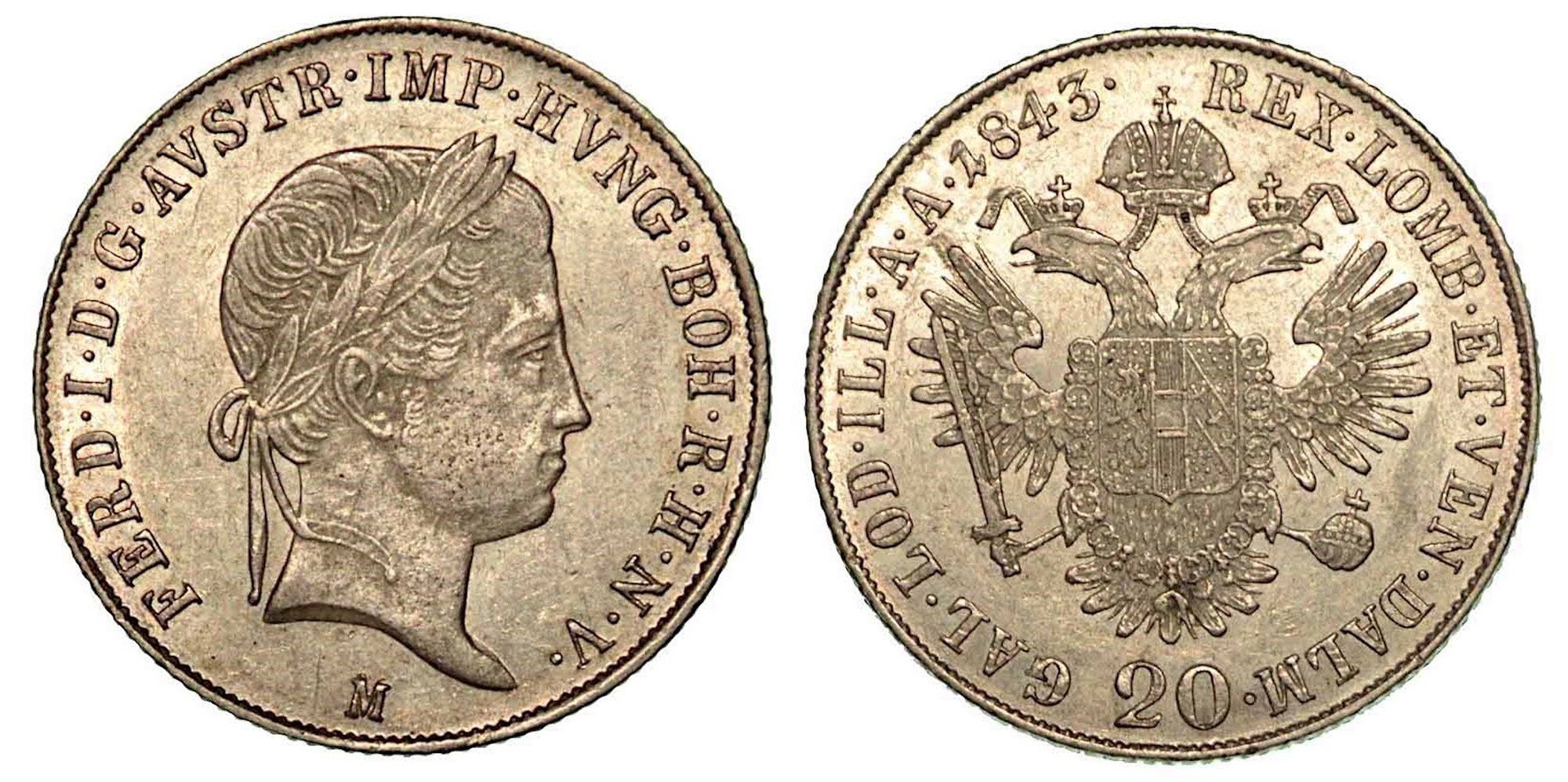 MILANO. Ferdinando I, 1835-1848., 20 Kreuzer 1843.