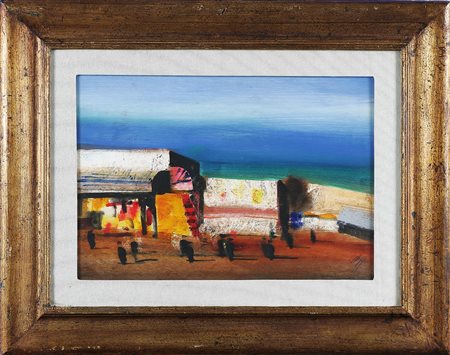 MAGAZZINI SALVATORE (n. 1955) Sharm el Sheik. Olio su tavola. Cm 50,00 x 35,00. Firma in basso a destra. Firma e titolo al retro. Autentica dell'artista su fotografia. Cornice presente