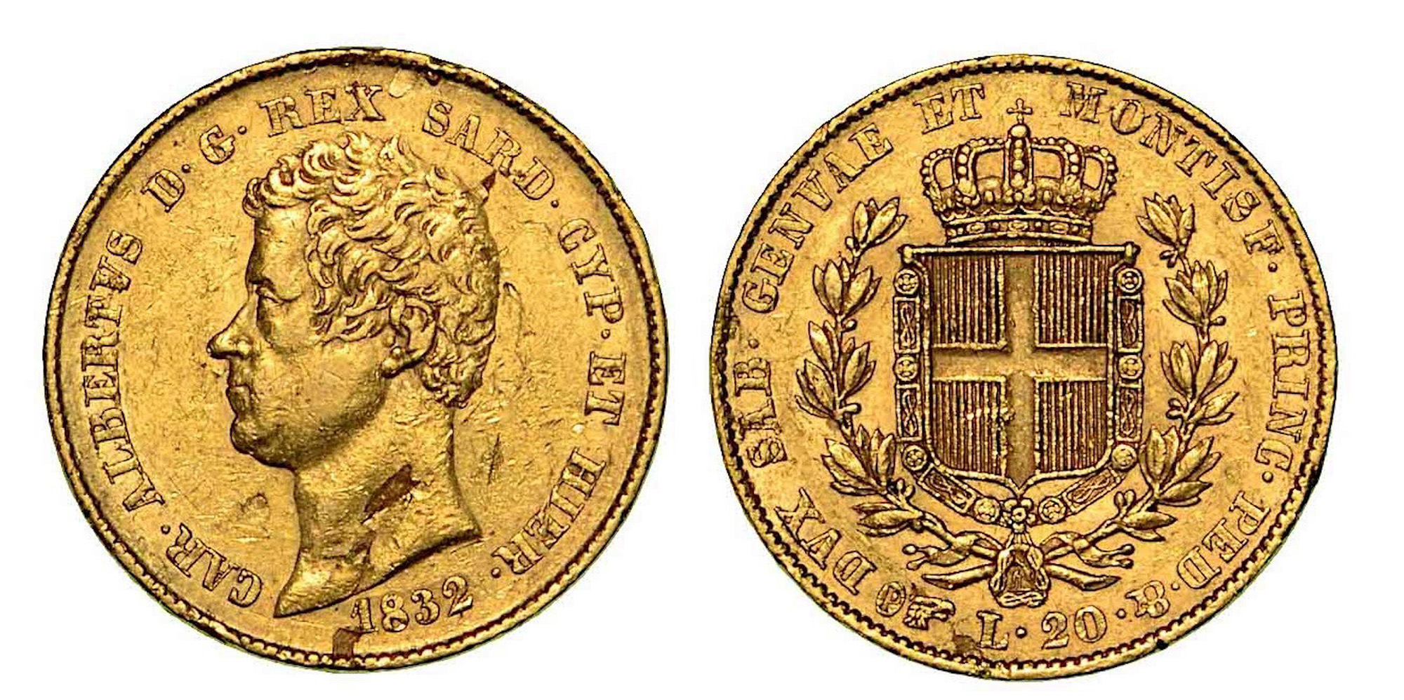 REGNO DI SARDEGNA. Carlo Alberto di Savoia, 1831-1849., 20 lire 1832, zecca di Torino.