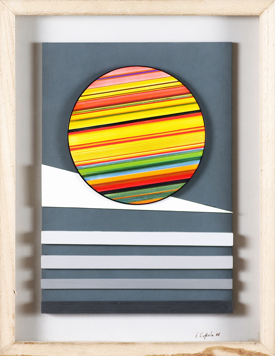 COPPOLA FERDINANDO (n. 1945) Un tramonto diverso. 2006. Tecnica mista su tavola. Cm 32,00 x 42,00. Firma e anno in basso a destra. Cornice presente