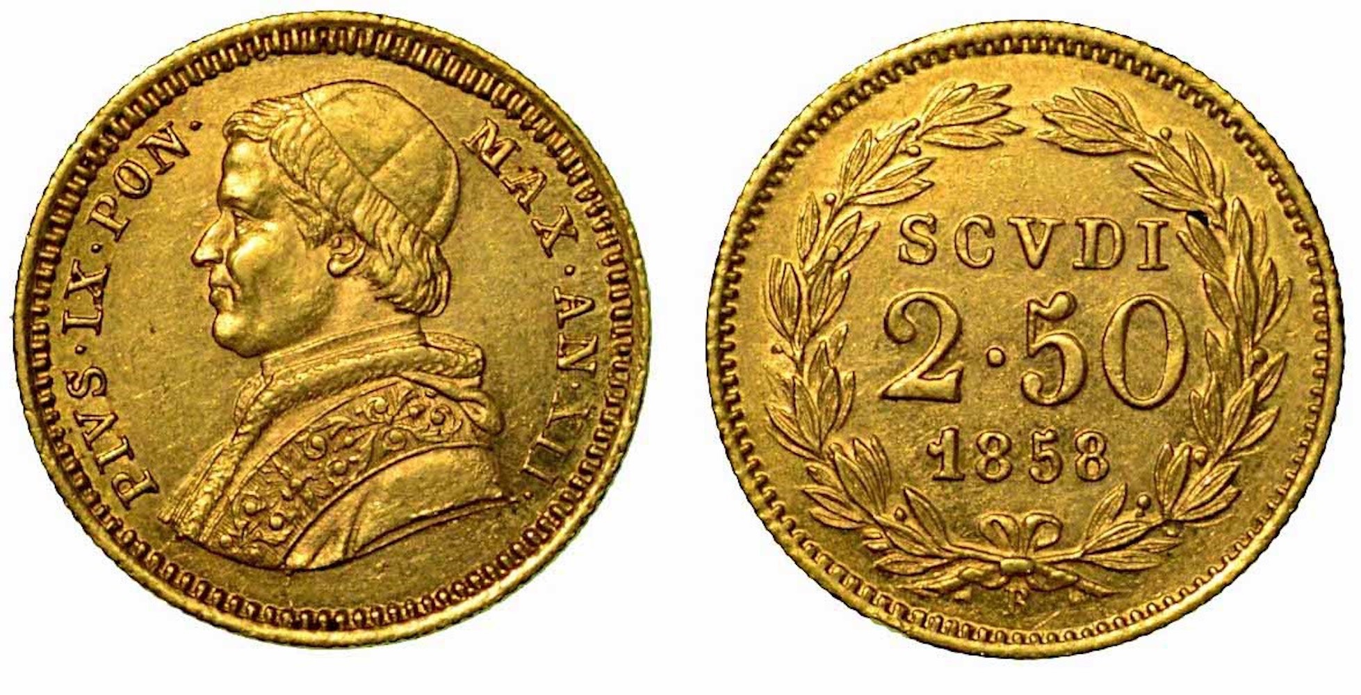 STATO PONTIFICIO. Pio IX, 1846-1878., 2,50 scudi 1858/a.XII.