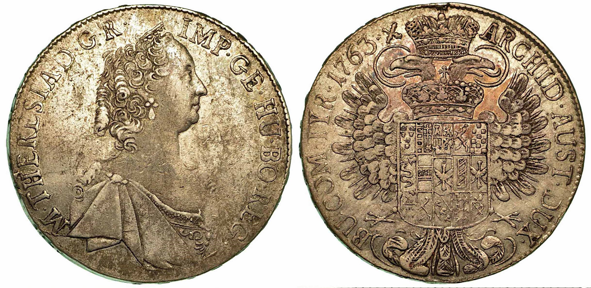 AUSTRIA. Maria Theresia, 1740-1780., Thaler 1763, zecca di Hall.