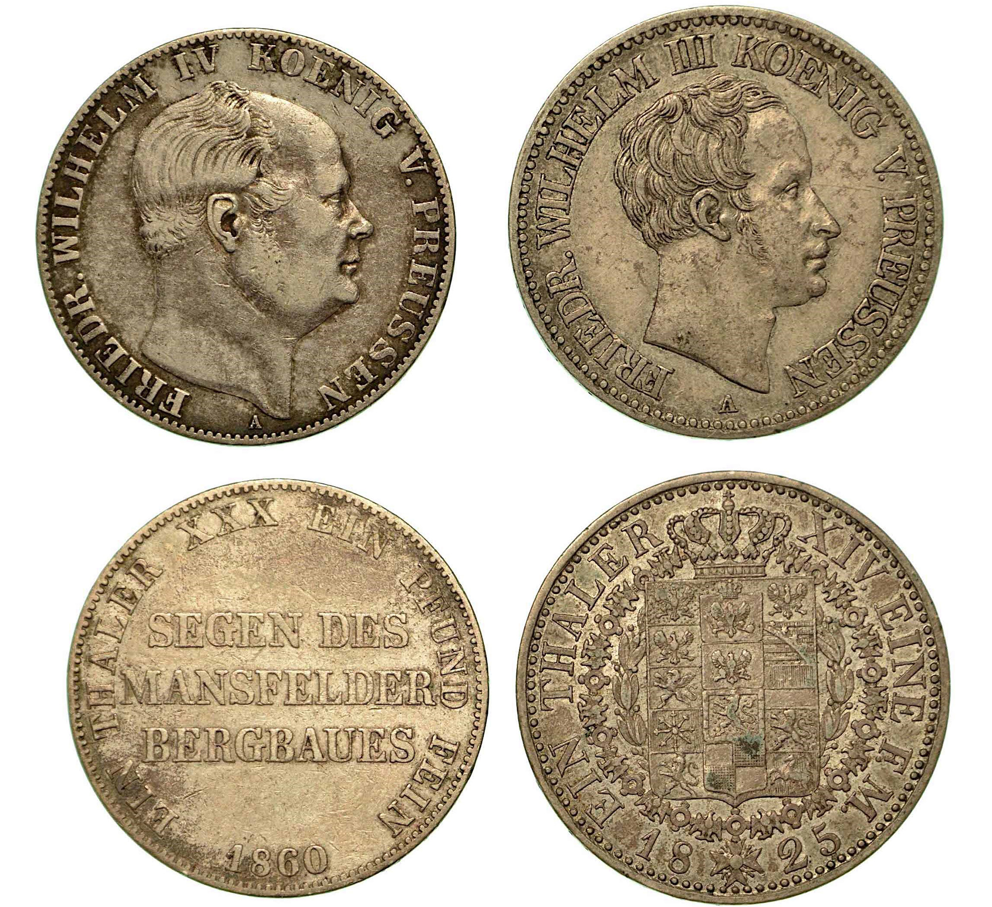 GERMANIA - PRUSSIA. Lotto di due monete., Friedrich Wilhelm III, 1797-1840. Thaler 1825 (BB). Friedrich Wilhelm IV, 1840-1861. Thaler 1860 (MB/BB-cartellino Santamaria). KM# 413 - 471.