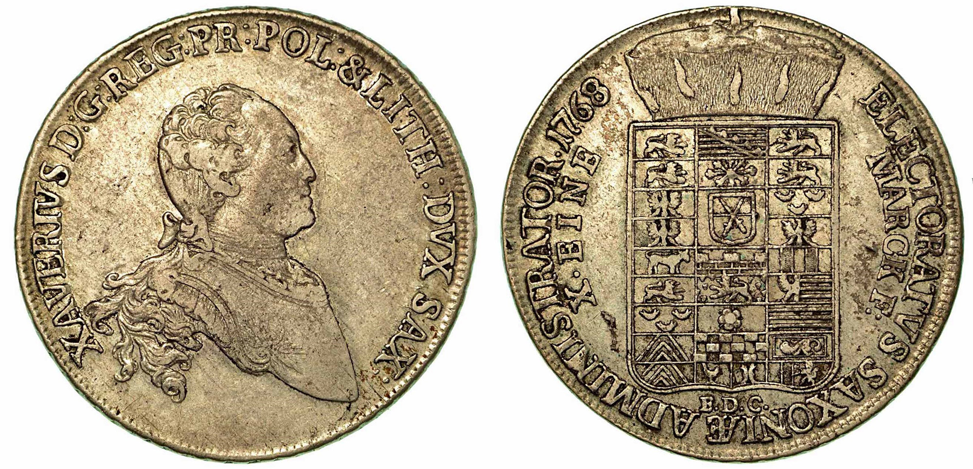GERMANIA - SAXONY ALBERTINE. Xaver (administrator), 1763-1768., Thaler 1768.
