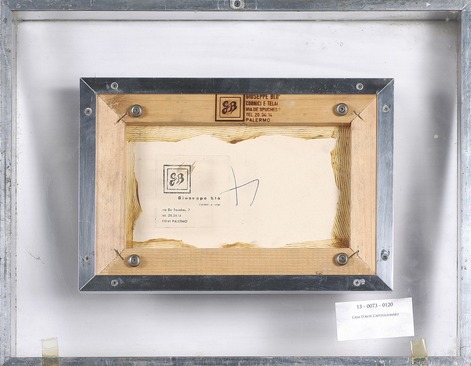 TUMMINELLO DISMA (n. 1930) Senza titolo. 1975. Tecnica mista su tela su tavola. Cm 28,00 x 20,00. Firma e data in basso a sinistra. Cornice presente