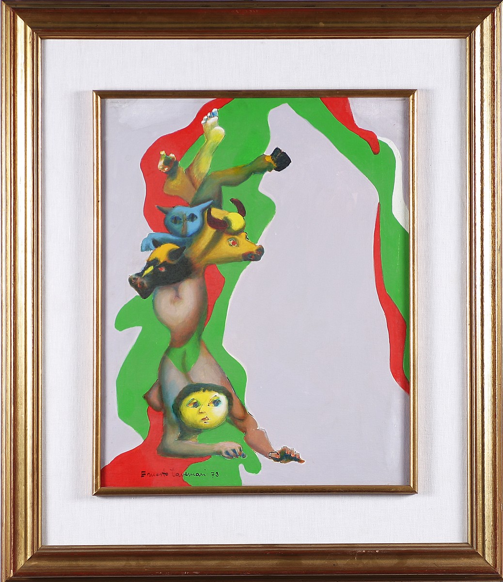 TAVERNARI ERNESTO (1911 - 2007) Molteplici scelte. 1973. Olio su tela . Cm 40,00 x 50,00. Titolo e anno in basso a sinistra. Al retro titolo firma e anno. Cornice presente