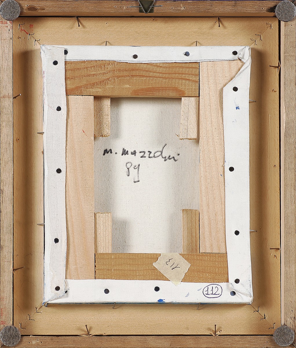 MAZZOLENI MARTINO (1935 - 1995) Senza titolo. 1989. Olio su tela . Cm 20,00 x 25,50. Al retro firma e titolo. Cornice presente